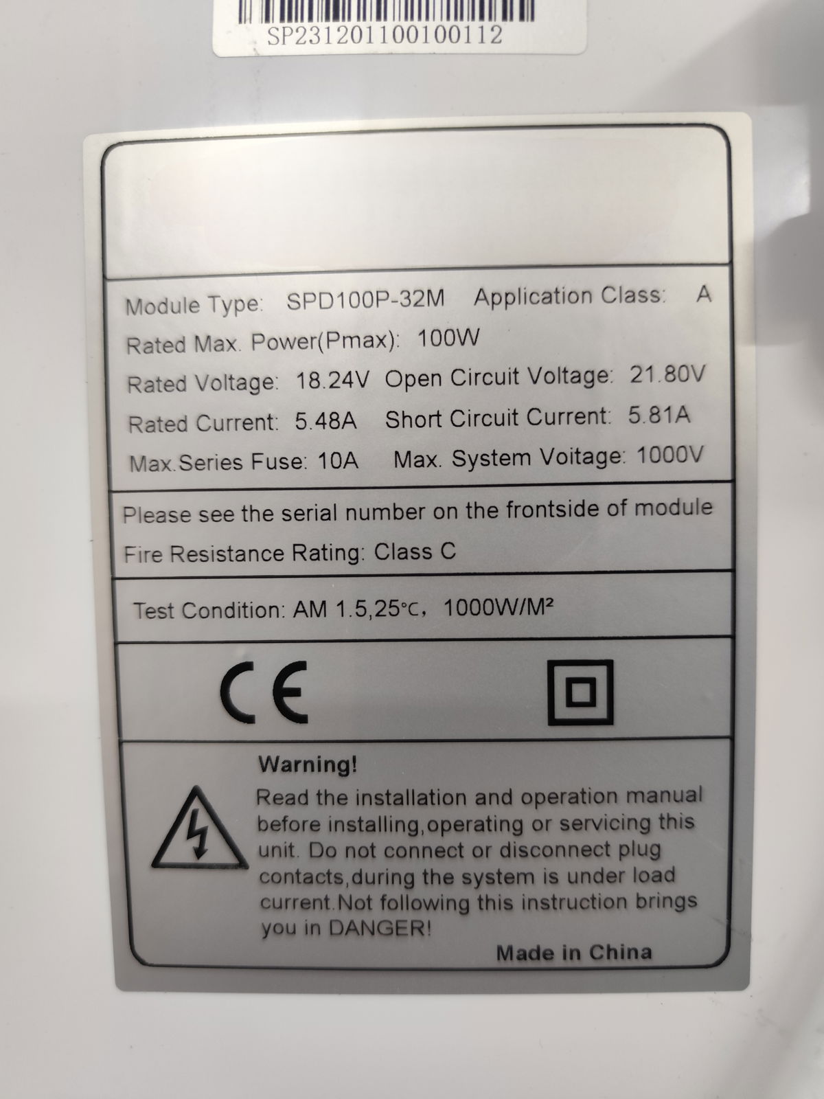 - Potencia Máxima (Pmax): 100W